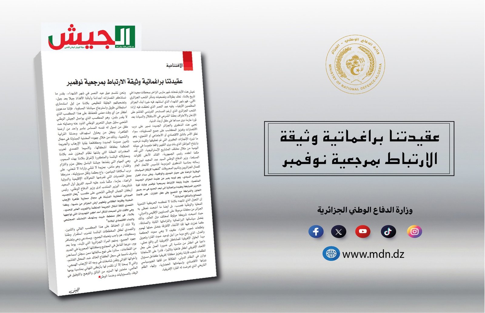 مجلة الجيش: عقيدة الجزائر الجديدة براغماتية ترتكز على مرجعية نوفمبر وتعزز مكانة البلاد دوليًا