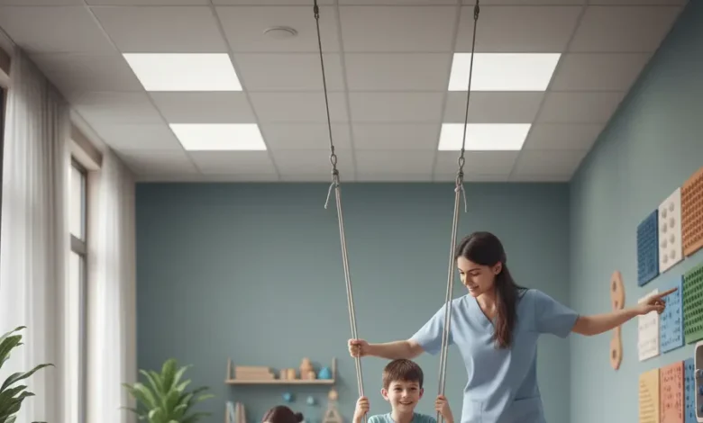 - المدخلات الدهليزية (Vestibular): استخدام الأراجيح، الكرات المطاطية الكبيرة، والدوران لمساعدة الدماغ على فهم الحركة والتوازن.