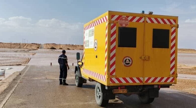 في ولاية أولاد جلال، وتحديدًا ببلدية رأس الميعاد، نفذت فرق الإنقاذ التابعة للحماية المدنية عملية بطولية لإنقاذ شخصين تعرضا لموقف حرج. كان الشخصان على متن سيارة علقت في مجرى وادي الجدي، وهو أحد الأودية المعروفة بتدفق مياهها بقوة أثناء الأمطار، وذلك على مستوى الطريق الولائي رقم 60 الذي يربط بين سيدي خالد ورأس الميعاد. تمكنت فرق التدخل من إجلاء الشخصين بسلامة تامة، مؤكدة على الاحترافية العالية التي تتمتع بها عناصرها في التعامل مع مثل هذه الحالات المعقدة، ودون تسجيل أي خسائر بشرية تذكر.