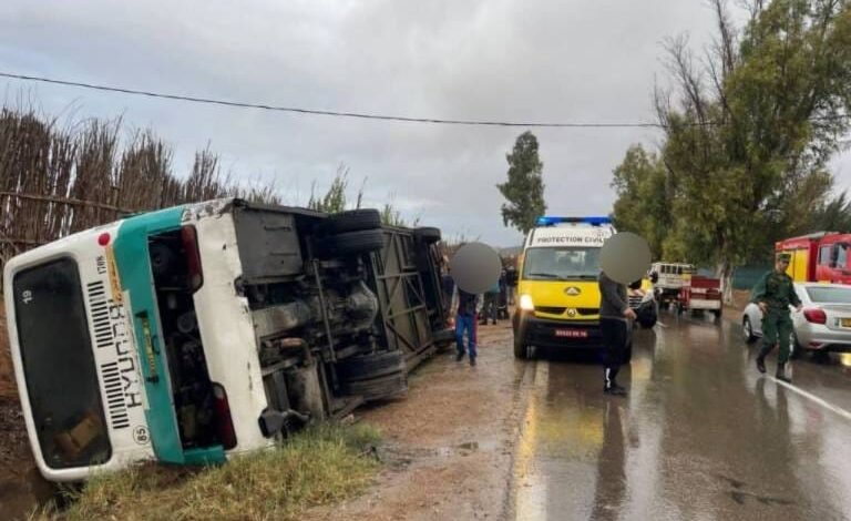 حادث انقلاب حافلة بمستغانم يخلف 14 جريحًا وتدخل سريع للحماية المدنية