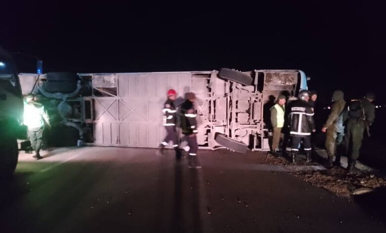 حادث سير مروع يخلّف 40 مصابًا في انقلاب حافلة ركاب قرب عين وسارة