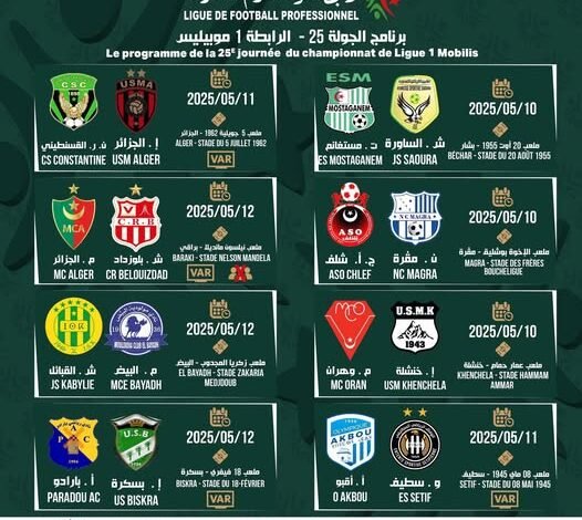 قمة الإثارة تترقبها الجماهير: برنامج الجولة الـ25 من الرابطة المحترفة الجزائرية