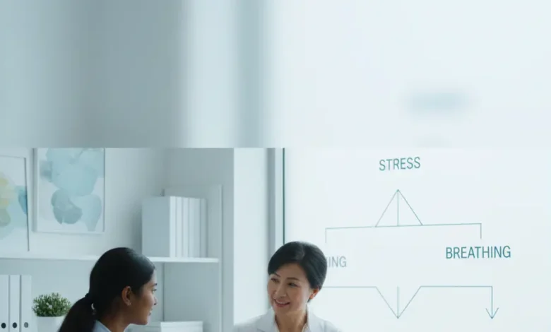 - التنفس العميق (البطني): تدرب على “تقنية 4-7-8”: شهيق من الأنف لـ 4 ثوان، حبس النفس لـ 7 ثوان، زفير من الفم ببطء لـ 8 ثوان. هذا ينشط الجهاز العصبي نظير الودي (Parasympathetic) المسؤول عن “الراحة والهضم”.