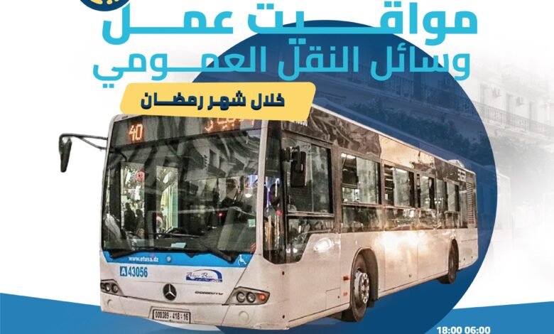 أعلنت مصالح ولاية الجزائر عن تفاصيل مواقيت عمل وسائل النقل العمومي خلال شهر رمضان الكريم، وذلك في إطار جهودها الرامية إلى تسهيل تنقل المواطنين وضمان توفير خدمة نقل سلسة تلبي احتياجاتهم خلال هذا الشهر الفضيل. وشملت التعديلات ساعات عمل حافلات مؤسسة النقل الحضري وشبه الحضري لمدينة الجزائر “إيتوزا”، بالإضافة إلى المترو، النقل بالسكة الحديدية، والترامواي، مع تركيز خاص على تمديد الخدمات خلال الفترات الليلية التي تشهد عادةً ذروة في حركة التنقل.