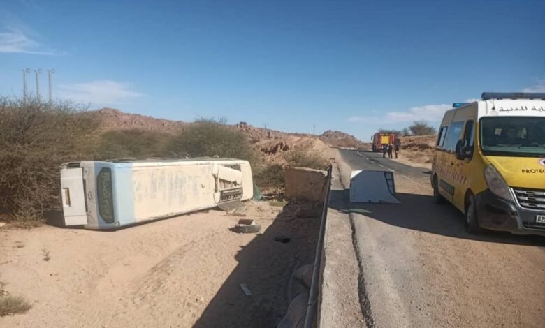 12 مصابًا في حادث مرور مروع بتامنغست إثر انحراف حافلة نقل مسافرين